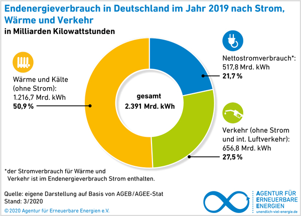 Wärme und Strom, ferner auch Kälte, gehören zu den wichtigsten menschlichen Grundbedürfnissen. Gleichsam gehören sie jedoch auch zu den bedeutsamsten Gründen, warum es überhaupt einen menschgemachten Klimawandel gibt: 2019 entfielen beispielsweise 72,6 Prozent des gesamtdeutschen Energieverbrauchs auf Wärme und Kälte (50,9 %) und Strom (21,7 %).